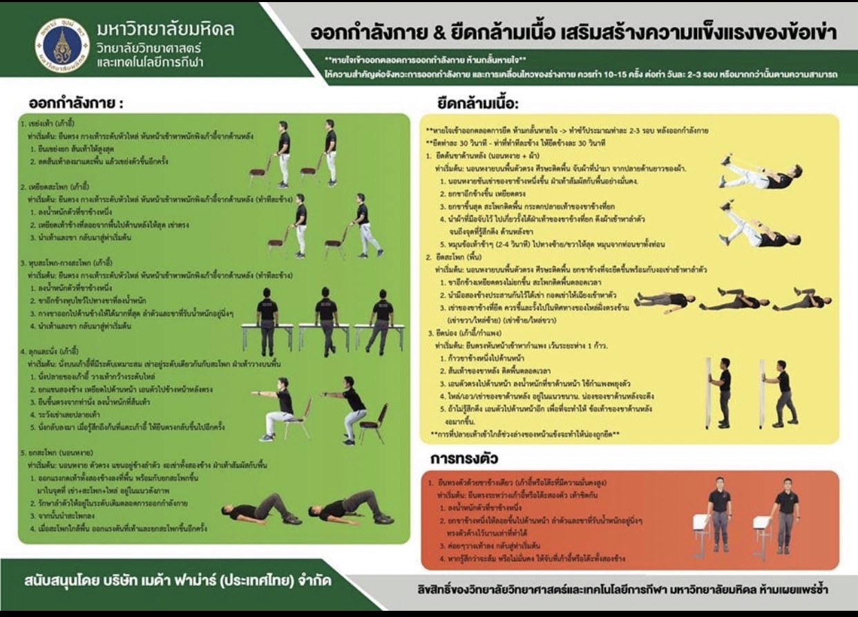 ท่านสามารถออกกำลังกาย และยืดกล้ามเนื้อ เสริมสร้างความแข็งแรงของเข่าได้ด้วยตนเอง